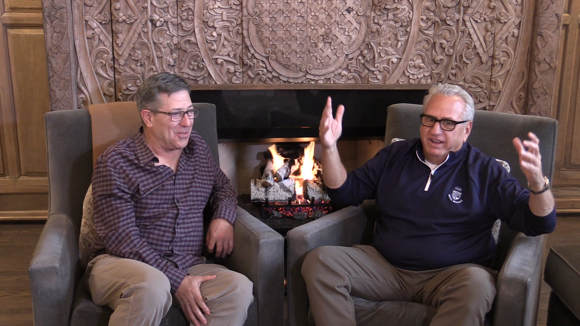 Greg Viti and Greg Moyer doing a Legends podcast in Greg Moyer’s home.